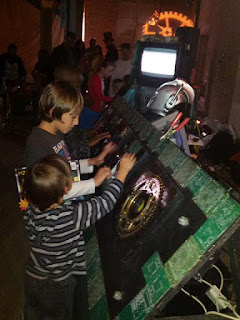 Audio generation and art mixed. This set up seemed to be designed to make as much noise as possible with as much redundant (i.e. glued together with no power applied) circuitry as possible. The kids loved it: